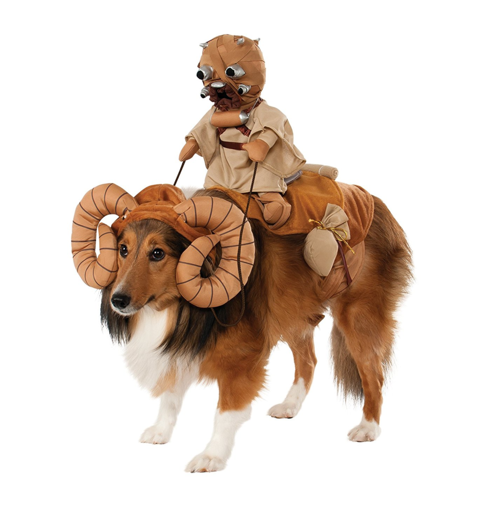 Bantha Costume – This is an officially licensed Star Wars costume with a Bantha jacket with attached rider and headpiece. This will fit most medium size dogs (15 Inch neck to tail and chest 17 Inch around). Best part is this can be hand wash or spot clean as needed.