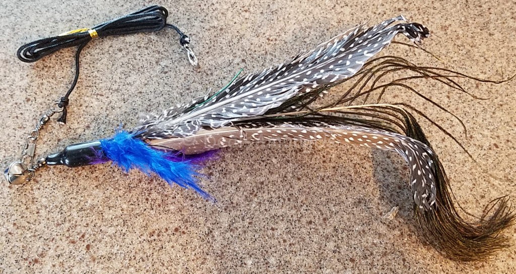 The feathers on the Bird Catcher PRO EX are Ultra Guinea Fowl Feathers, and both cats seemed to love them! Also included is a mouse that you can skittle on the ground.