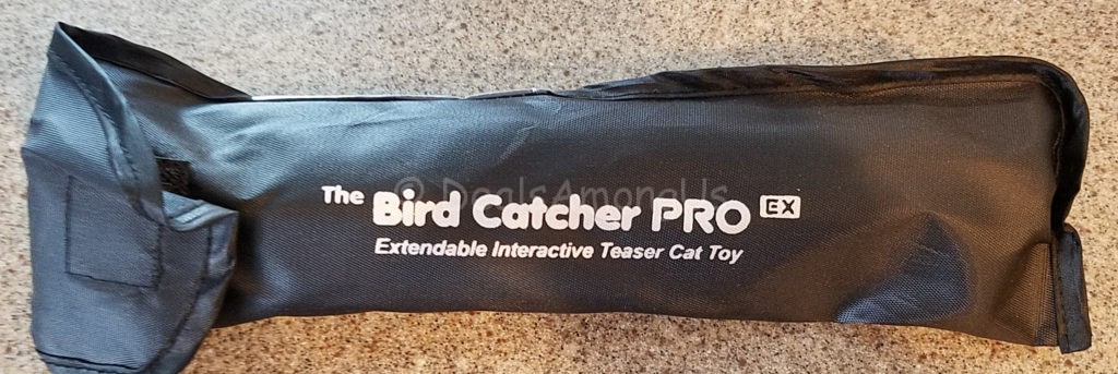 Right off the bat the first thing that I noticed is that this was much smaller than I initially expected, The Bird Catcher PRO EX comes with Two Ultra Guinea Fowl Feather Flyers, One Plush Mouse, an Extendable Handle and Closeable Storage Bag.