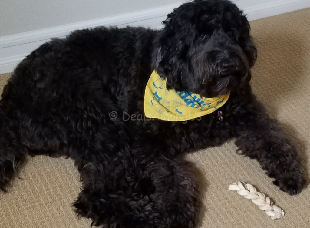 I mentioned above that these must be tasty, I say this because at one point we went upstairs and as usual Meadow followed us. Nothing special was thought of the fact she followed, as that is what she typically does. What was special is that when we looked at her, she was chewing on the Braid – she brought it with her to gnaw on.