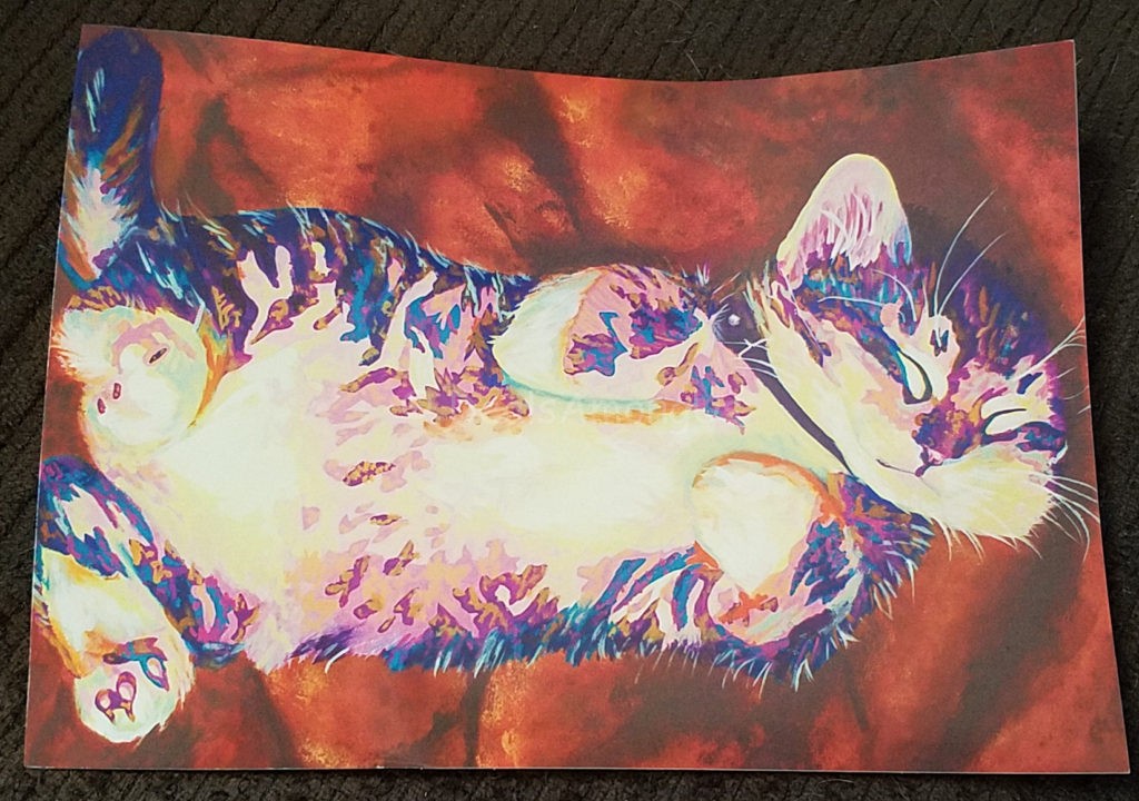 Cat Lady Featured Artist – “Spectra Cosset” by Asra Rae: I LOVED this months artist, and this is full of color. This postcard will be put on my wall and added to my Cat Lady Postcard collection, which always makes me smile!