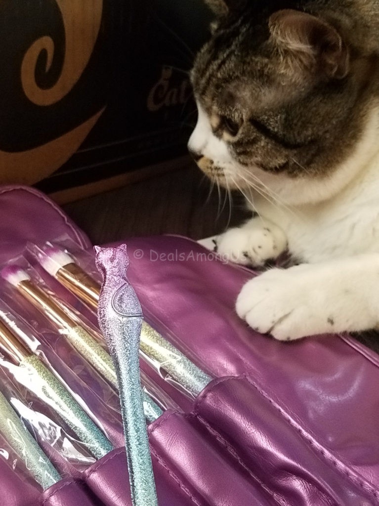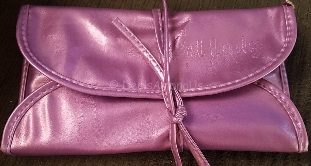 Cat Makeup Brush Set – CatLadyBox Exclusive: I have been wanting a makeup brush set so I could not be more excited to see a cat themed one. These almost shimmer in the lights and the bristles are soft, all contained in a cute purple Cat Lady Box themed storage with 5 brushes.