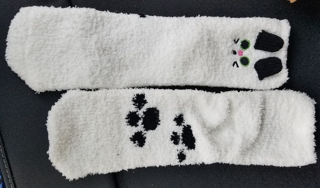 Fuzzy Cat Socks – CatLadyBox Custom: Regular readers will know how much I love socks – my love for them is deep and eternal. I love that these have paws on the bottom and cute ears and eyes. These were made special for Cat Lady Box and are so soft.