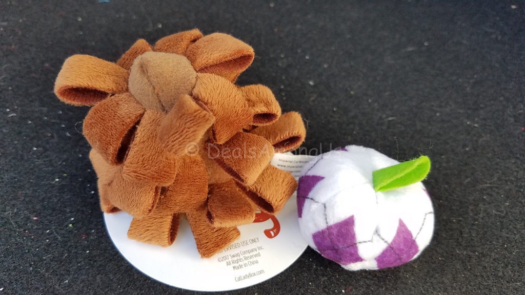 *CAT TOYS*Purrfect Pinecone and Argyle Pumpkin Catnip Toy – CatLadyBox Exclusive: I have mentioned that cat toys tend to vanish in our house, and we are not sure why this is, so the extra treats for the kitties is always welcome. These were taken as quickly as they were taken out of the box!