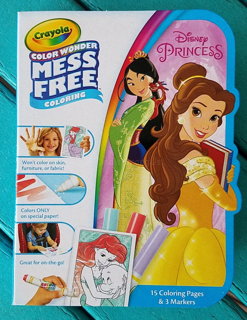 There are 4 of the Crayola Color Wonder On-The-Go Sets, Disney Princess, Shimmer and Shine, PJ Masks and Paw Patrol. Each set includes 15 mini coloring pages and 3 Color Wonder Markers.