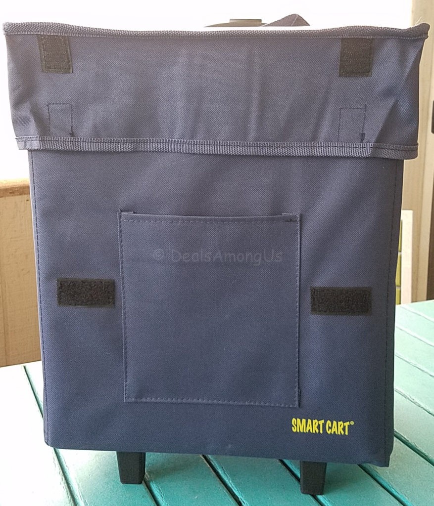 There is a front pocket that was perfect for coupons and lists of that was needed to purchase. The Smart Cart is waterproof and the wheels are surprisingly smooth when you are pulling this behind you.