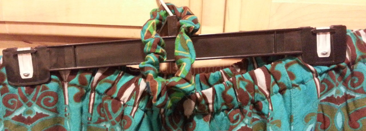 Closeup of skirt and scrunchieWhat resulted was a skirt that is comfortable and a scrunchie that matches. I love this new life I gave this dress!  I love that it is wearable now and I can enjoy it on adventures, instead of it just being in a pile!
