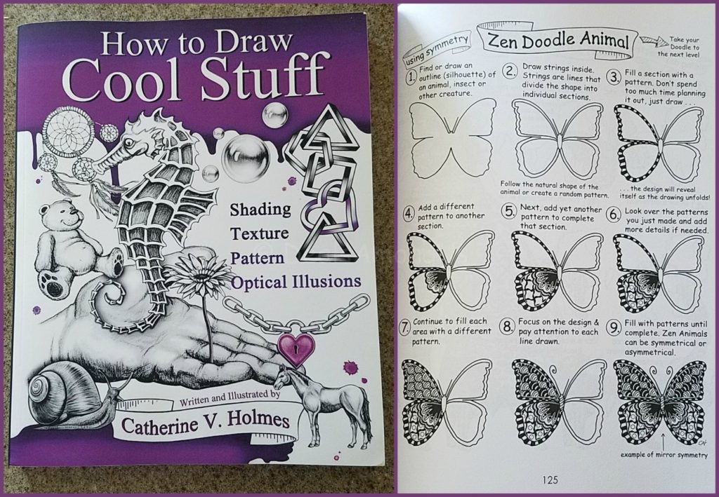 The third book in the collection was How to Draw Cool Stuff: Shading, Textures and Optical Illusions, which was my favorite since I love optical illusions. Each step adds elements to that image which allows the artist to build on the creation and make a more detailed image.