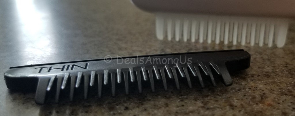 This brush is comfortable and easy to hold while remaining easy to brush through her fur. The brush comes with 2 variations of the comb, a thin toothed and a regular toothed brush.