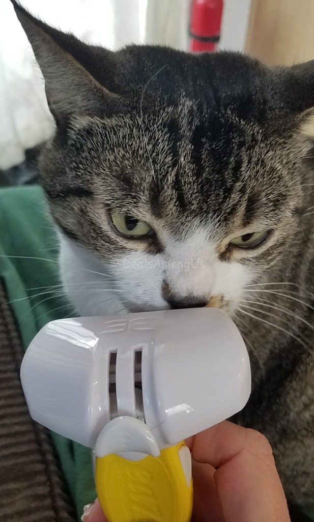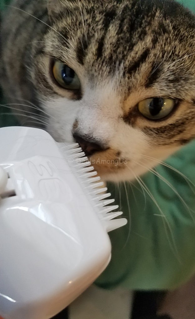 The day that I decided to use the Eazee Deshedding Brush it is as if she knew that I had a brush for her. One of the first things I always do when I open something that is meant for the cats is let them sniff the item. This allows them to “scent” the items, and make it their own.