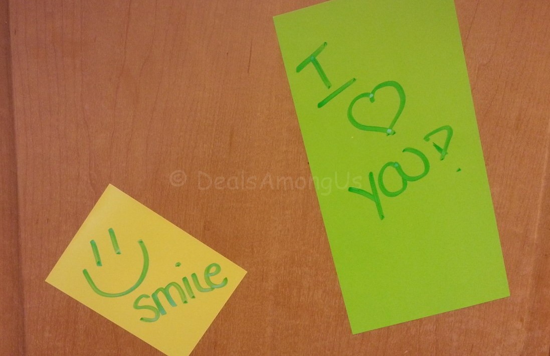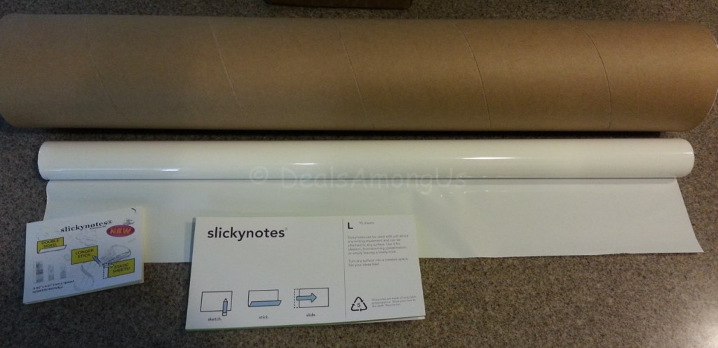 The second item I received for review were the EcoStatic Recycled Glue Free SlickyNotes Note Pad that works in conjunction or stand alone with the Whiteboard sheets also made by EcoStatic. SlickyNotes are 21% bigger than regular 3×3 sticky notes and are double side – 1 side is white for dry erase so it can be reused over and over again and the other side is brightly colored for 1 time use.