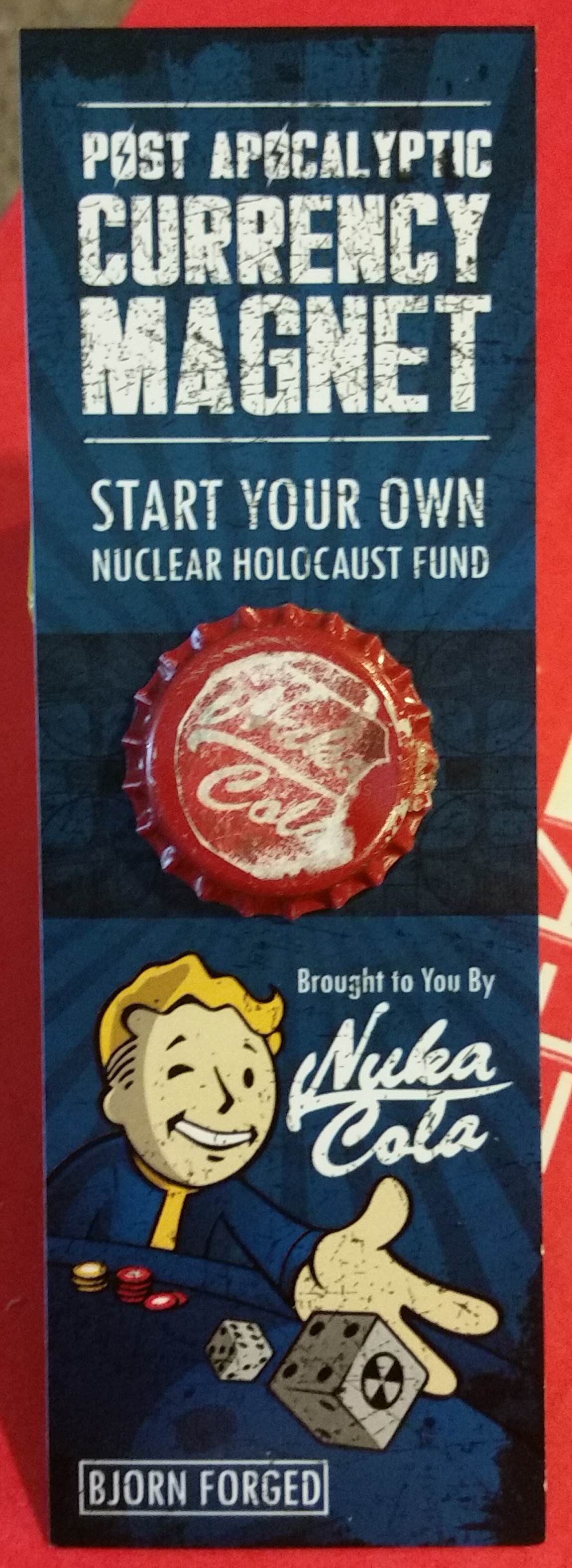 Fallout Series – Post Apocalyptic Magnet – $5.00 – This is something that our house needed and I am surprised that this is our first bottle cap from Nuka-Cola. This will be a daily reminder of how I love games and despite how busy I get, the Fallout world is waiting. Plus the cardboard it is mounted on would make an awesome bookmark!