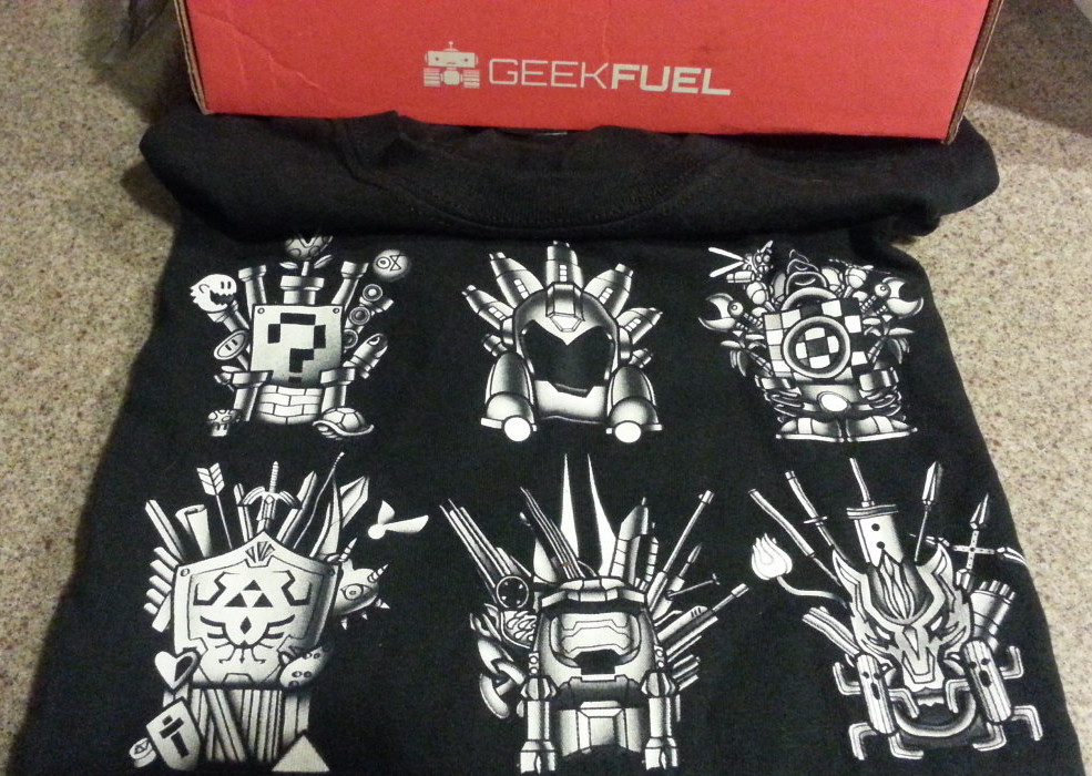 Geek Fuel’s Monthly Subscription Service launched in December 2014 and is a monthly gaming/geek themed subscription box service. The box is mailed monthly, around the 20th, in a red box labeled with the Geek Fuel logo. Each box contains a t-shirt that you can only get from having a monthly box subscription.