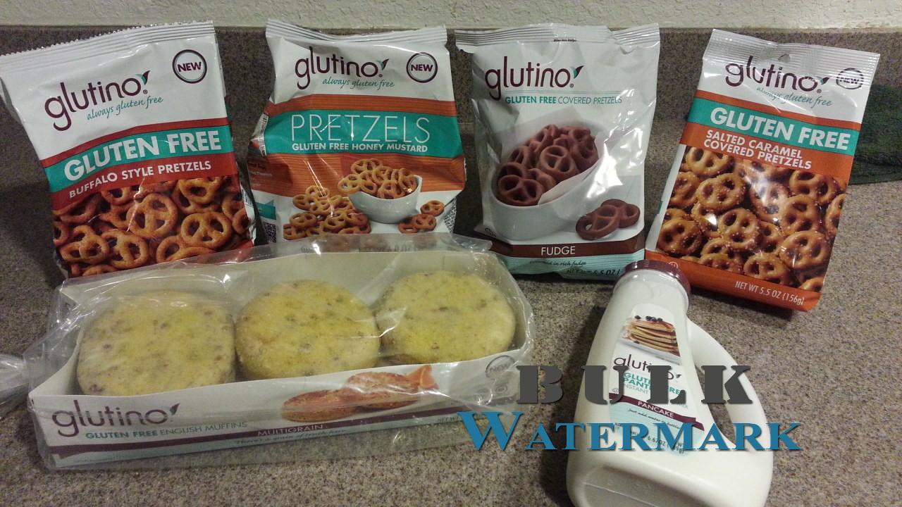 In the box I received from Glutino I got a 5.5oz bag of each of the following pretzel flavors: Honey Mustard Pretzels, New Buffalo Style Pretzels, Fudge Pretzels and Salted Carmel Pretzels. I also received a pack of 6 Multi-grain English Muffins and 1 Shake and Pour pancake mix.