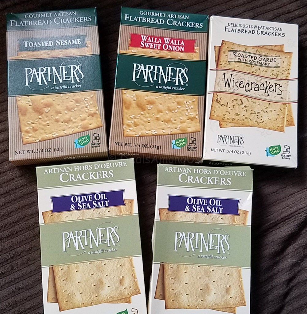 Olive Oil & Sea Salt Hors D’Oeuvre Crackers by Partners – These are not just any artisan crackers. These are crunchy and lightly seasoned with gourmet olive oil and sea salt. These make a nice flavor with the enclosed cheeses.
