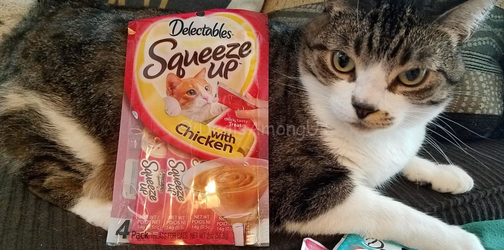 I received an assortment of Hartz Delectable Cat Treats including the Hartz Delectable SqueezeUp Cat Treats.