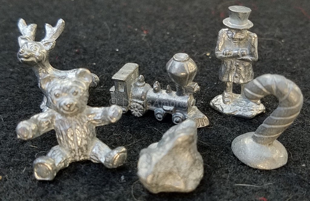 Each token is holiday themed and include an candy cane, train, teddy bear, reindeer, scrooge and a unique “lump of black coal”.