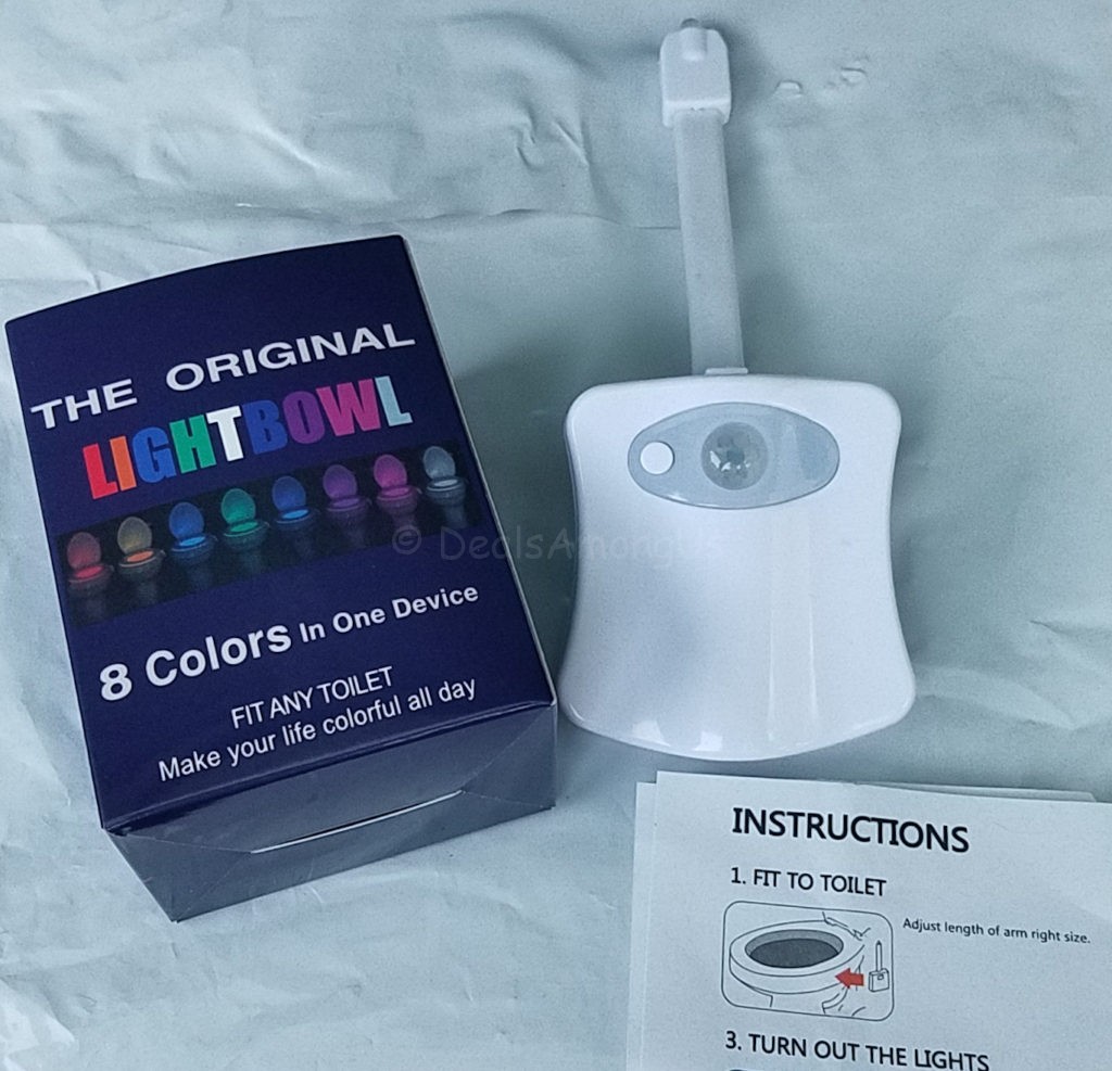 Lightbowl Motion Activated Toilet Night Light: My house is the capital of color, and I love to have color around me as much as possible, although I have always believed the toilet should be immune from this color explosion. This is a simple battery operated device that has 8 colors and can attach to almost any toilet. It needs to be completely dark for the device it to work.
