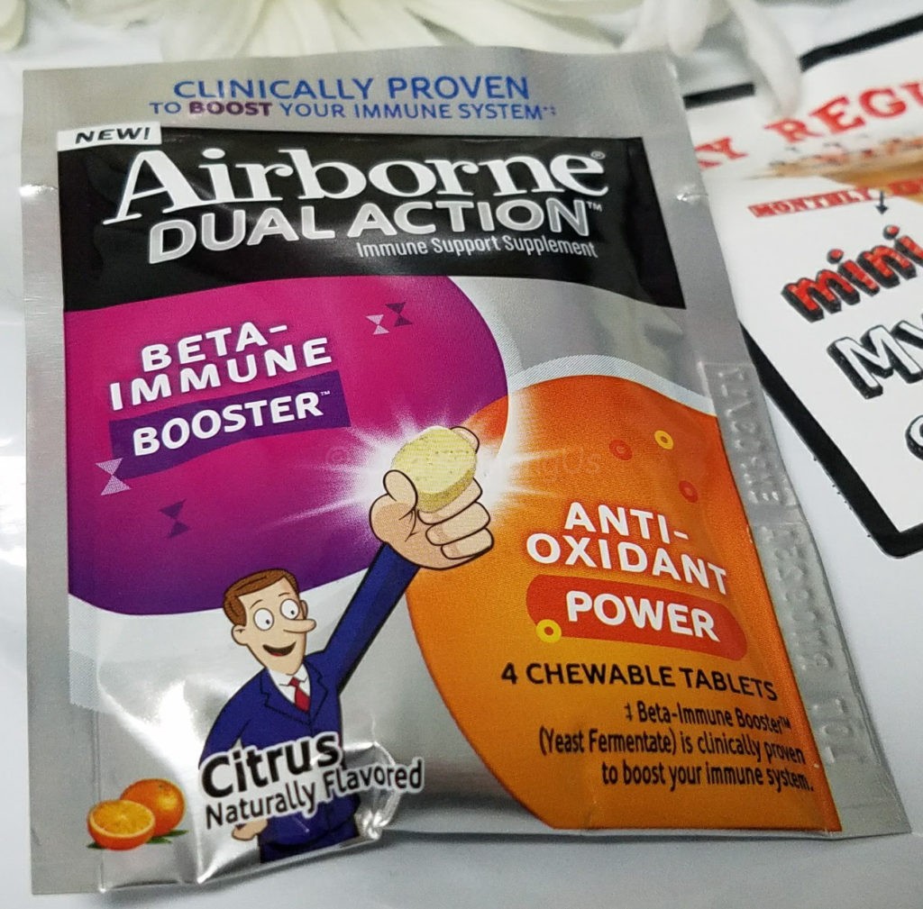 Airborne Dual Action Sample: I was not sure what to think about this small sample size, and since this was a sample it would have been better to include this as an additional item instead of one of the three items in the package. That being said, this will be used as we are big Airborne fans in this house.