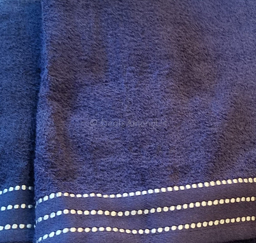 2 Blue Towels: These are solid blue towels with a little detail. These measure at 27 x 58 and would be a good size for someone smaller, or a child.