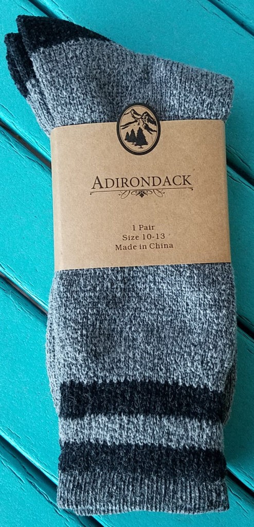 Adriondack Socks: As regular readers can attest, I love socks! I have never had a pair like this before and since I have a size 9.5 show, I am happy these are a little larger. The bonus is that due to their big size, even Jason can wear them – let the battle begin!