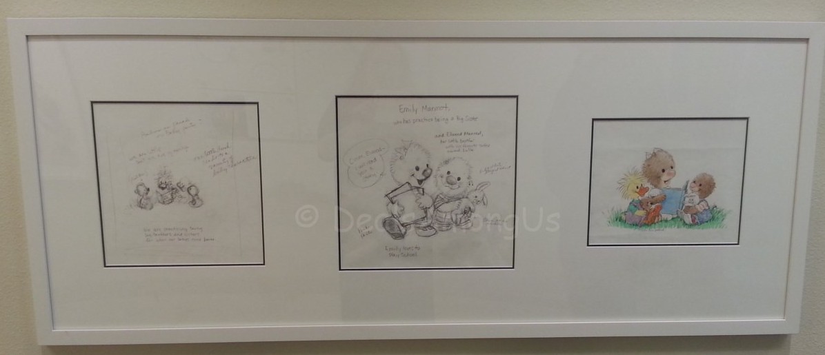 A couple years ago Jason and I heard that there was a gallery of original work and new work at Sharp Mary Birch in San Diego: The Suzy’s Zoo Gallery at Sharp Mary Birch. We made plans to make a trek down there but reality always got in the way and it became a wish to see. Flash forward to almost 3 years later and my 40th birthday and we finally made the trek down. We had called ahead to make sure that the gallery was still there and we were told by 2 separate people that it was not longer there. I am not going to lie, I was disappointed and in a effort to curb that disappointment Jason suggested we check anyway, in case the person on the phone did not know what we were talking about. We drove to the drop off/pickup so that I could run in and ask and before I was able to get out of my car I saw the gallery. I was thrilled and immediately parked and went in.