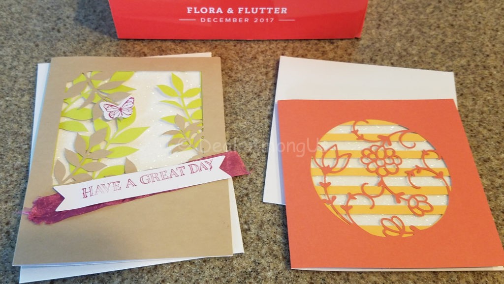 The theme for the December 2017 Paper Pumpkin kit is called “Flora & Flutter” which is a set of two styles of cards. perfect for well wishes and keep dreaming messages!