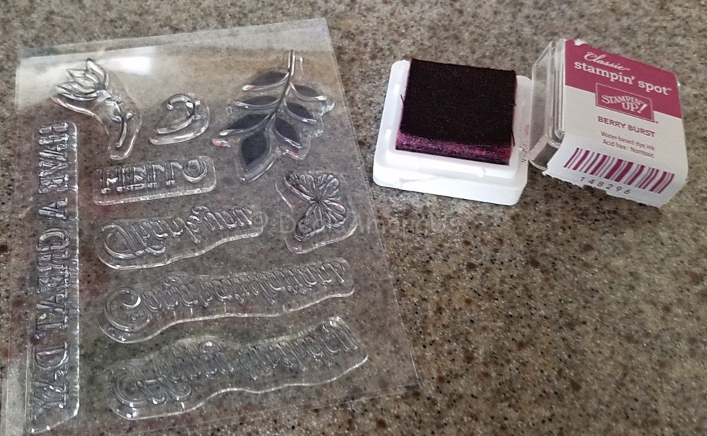 This months stamp set is a mix of 9 stamps that have the floral leaf patterns and sentiments. Also included was a Stampin’ Spot Archival Ink’s in Berry Burst, which is a fast drying and acid free ink purple shade.