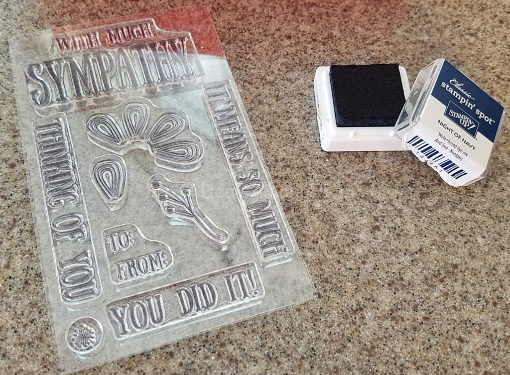 This months stamp set is a mix of 9 stamps that have the floral leaf patterns, a branch, butterfly, and sentiments. Also included was a Stampin’ Spot Archival Ink’s in Night of Navy, which is a fast drying and acid free ink.