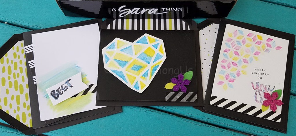 This month is a kit that makes 12 cards and envelopes and is titled “A Sara Thing“.
