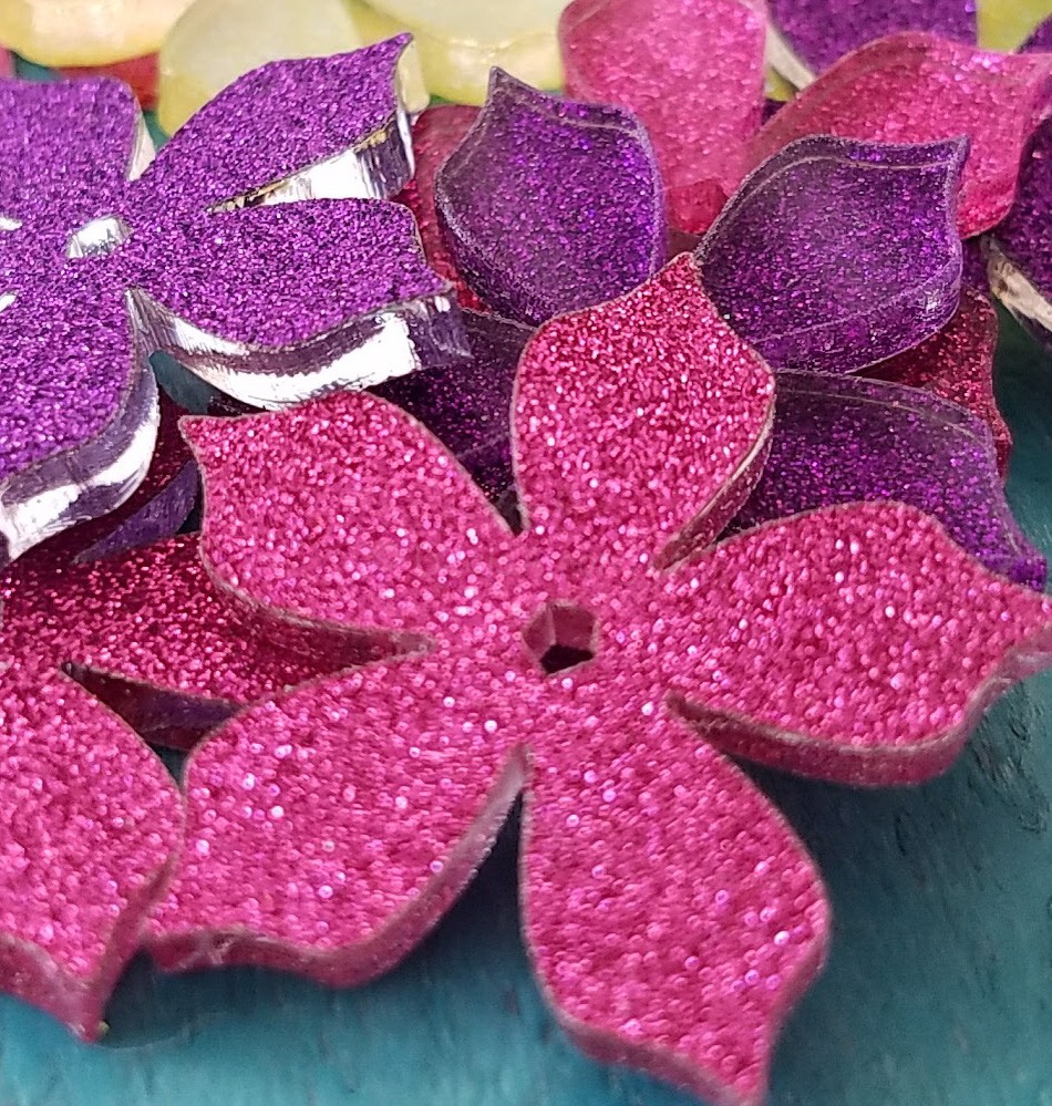- 12 Glitter Acrylic Flowers