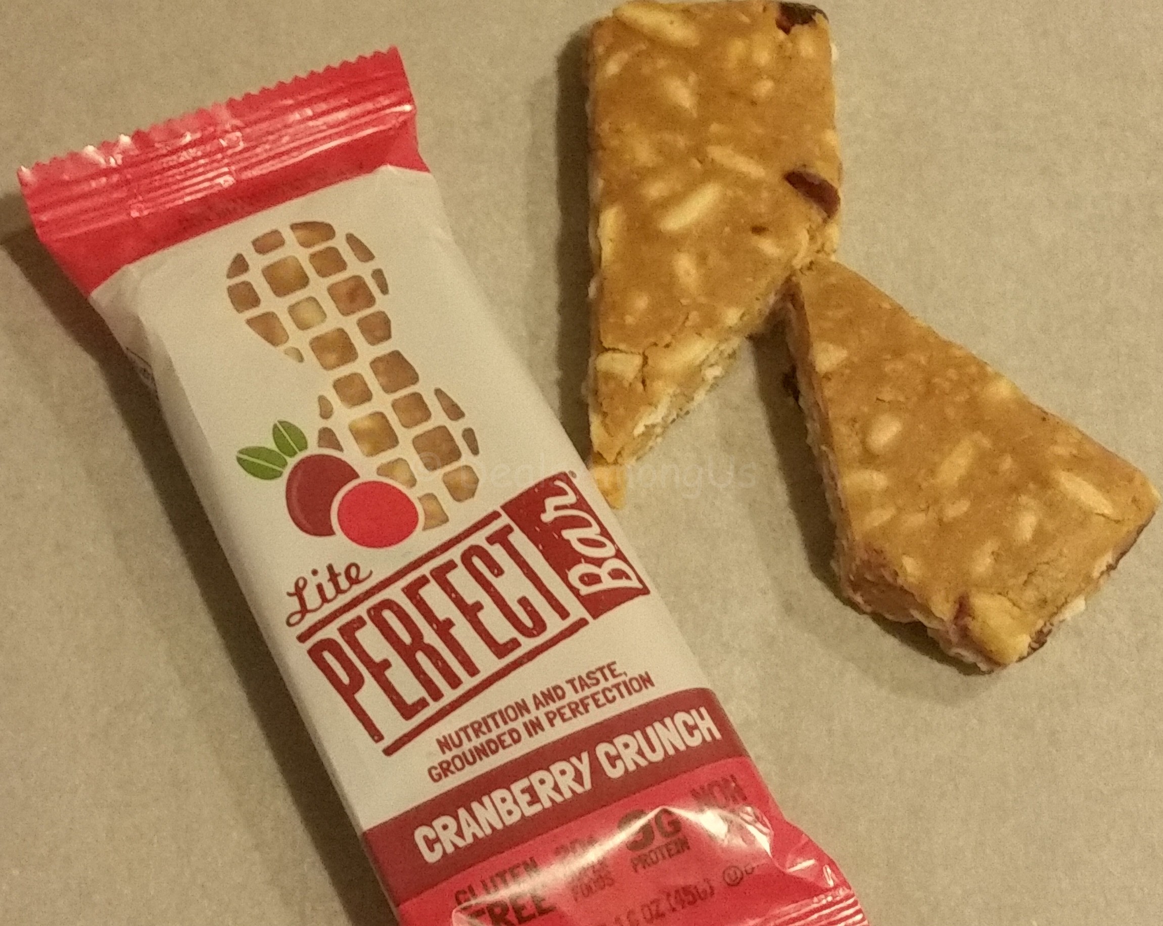 Perfect Bar - Cranberry CrunchCranberry Crunch: This regular size bar has 9g of whole food protein and it one of the “lite” bars. This bar contains 86% organic ingredients that include peanut butter, organic honey, organic cranberries, crispy puffed rice and 20+ super foods that include organic apples, organic orange and organic spinach. My favorite part of this bar was the rice crispies included that added a nice crunch.