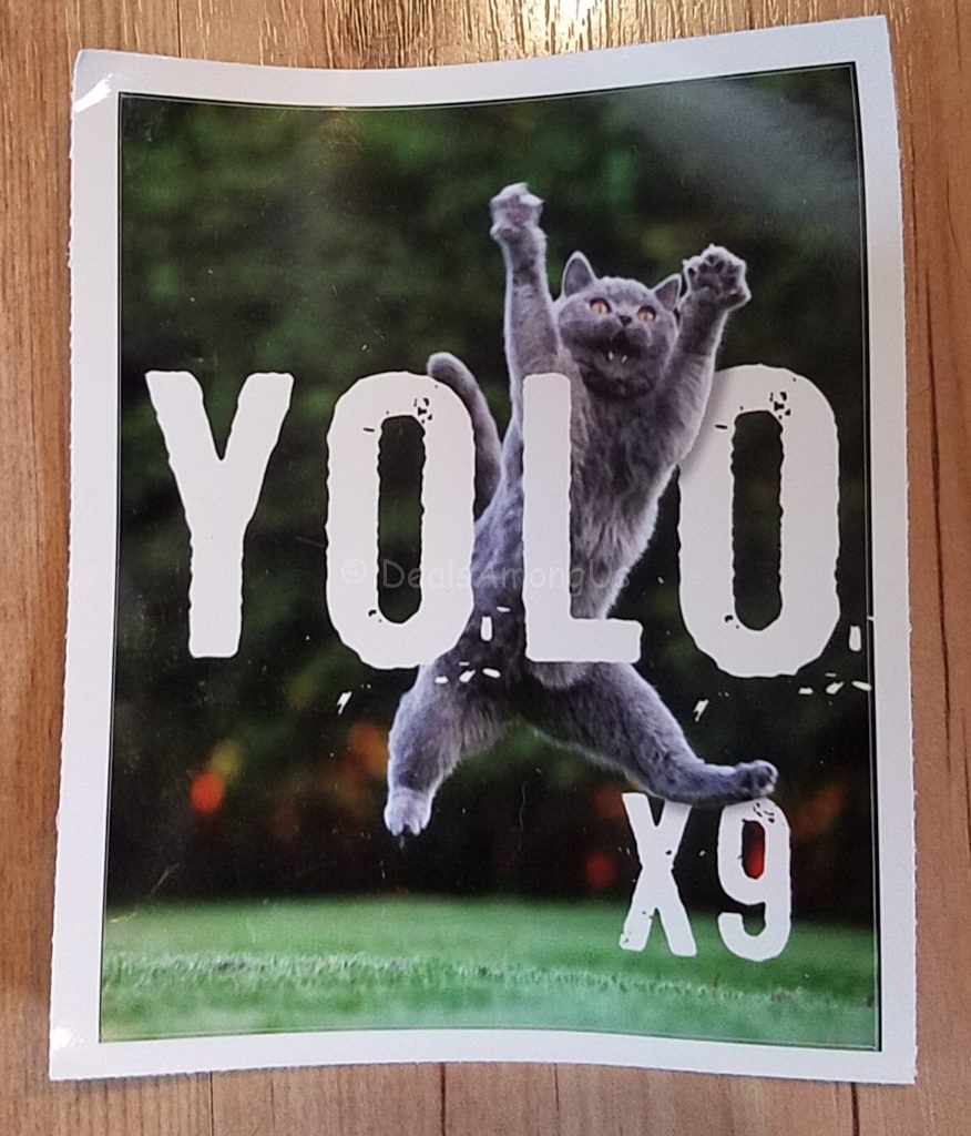 Treat for Cat Guardian – Sticker – YOLO x 9: Cats live by the motto that they have 9 lives, at times they do dangerous and random things that humans would not do. It is true that “You Only Live Once” but cats live 9 times!