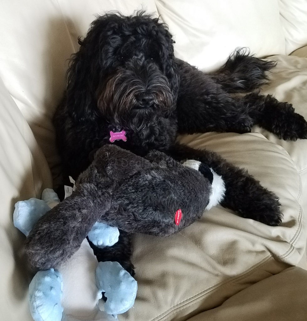 Petlou, Inc. – 19″ Badger Dog Toy and Pale Alligator – Meadow loves plushies and when she saw two in the box, she was torn which one she wanted. As it ended up she took them both on the couch with her, alternating which was her favorite. She loves to chomp down and hear the plushies squeek.