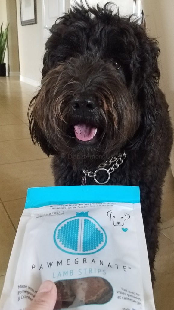 Pawmegranate – Lamb Strips – There are natural dog treats that are made with farm raised lamb and beef. Also included are real pomegranates and cranberries, chickpea flour, cane molasses, honey, blueberries and sweet potatoes. These sound good enough for a human to eat, and the ingredient list is simple and natural. These are special treats when she has her bff Noodles over.