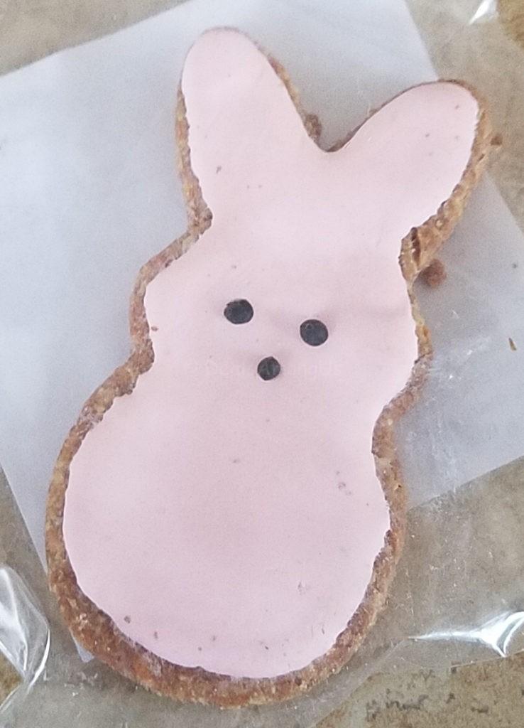 Bunny Shaped Iced Cookie: These are Carob Peanut Butter Crunch cookies that are made with dogs in mind. As I have said, these are gifted to Meadow’s best puppy friend Noodles, and it is always well received, and eaten!
