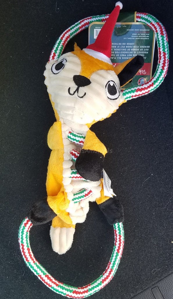 When I gave her the treats from the December Pet Treater as she does each month, she learns and finds the squeaker in the toy within only a couple of moments. The next step is usually running off proudly with her newly discovered bounty which she did proudly this month.