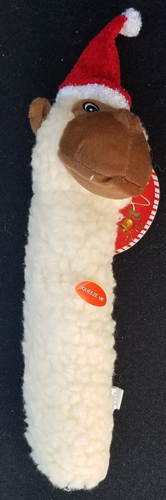 Holiday Themed Plush Toy: This crunchy, squeaky toy is the perfect size for the cats to have, and giving them the perfect size to bunny kick.
