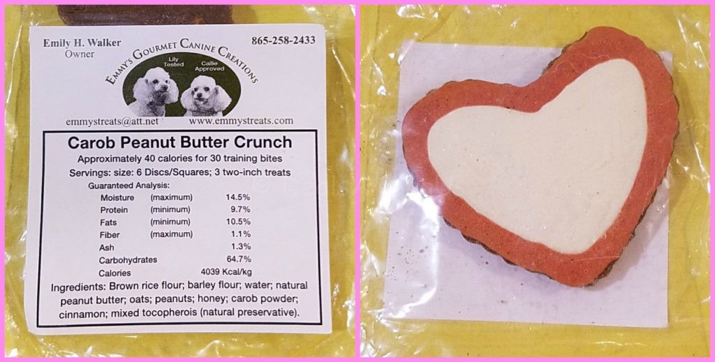 Carob Peanut Butter Crunch Cookie: These are Carob Peanut Butter Crunch cookies that are made with dogs in mind. My father gifts these to Meadow’s best puppy friend Noodles, and it is always appreciated!