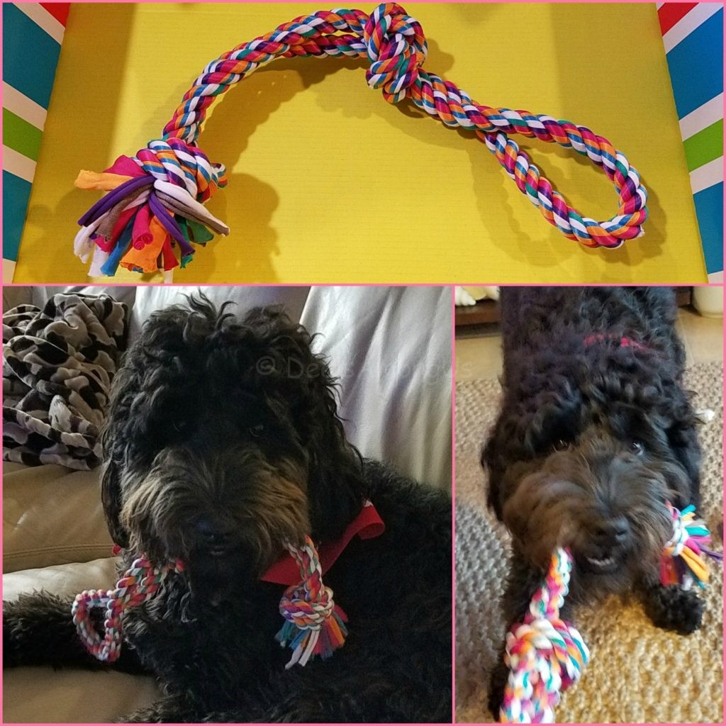 ASPCA Dog Pull Toy: I loved the colors in this pull toy and Meadow loved the toy from the moment her teeth touched it. I let her have this and she ran off to the couch and began chewing it, by the time I left a couple of hours later, there were strings missing and ripped off this toy – she is a destructive dog!
