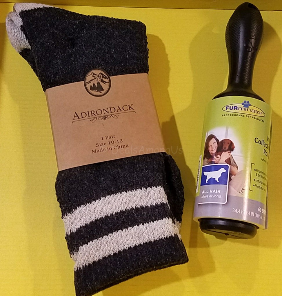Treats for Human and Dog: Each month Pet Treater includes a present for the guardian of the animal. This month was a Furminator Pet Hair Roller, which is always helpful to have on hand and Adirondack Socks, which I have gotten in a past box from Jammin Butter and love them, so I am thrilled to have a second pair.