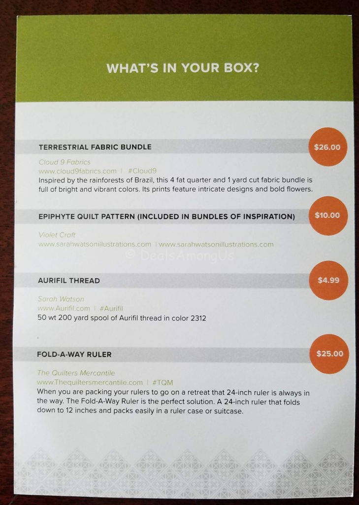 I LOVED this box, and I love that quilters and crafters have a monthly box that delivers the items needed to create a sophisticated and stylish quilt!