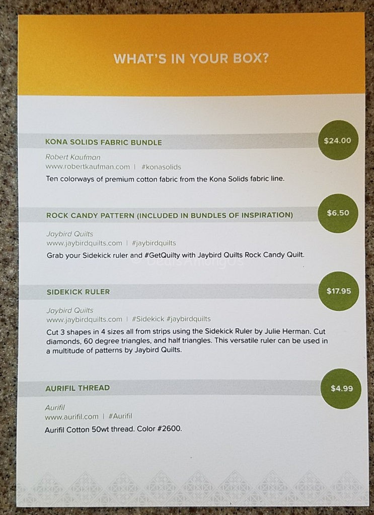 I LOVED this box, and I love that quilters and crafters have a monthly box that delivers the items needed to create a sophisticated and stylish quilt!