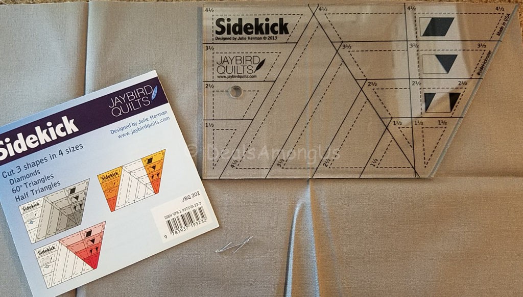 Sidekick Ruler: The Sidekick Ruler can cut 3 shapes in 4 sizes from strips of fabric. This can also cute diamonds, 60 degree triangles and half triangles and can be used with other Jaybird Quilts.