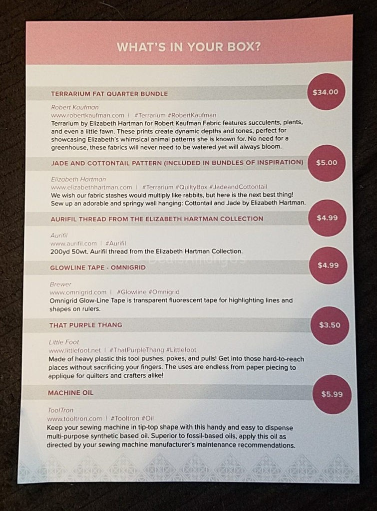 I LOVED this box, and I love that quilters and crafters have a monthly box that delivers the items needed to create a sophisticated and stylish quilt!