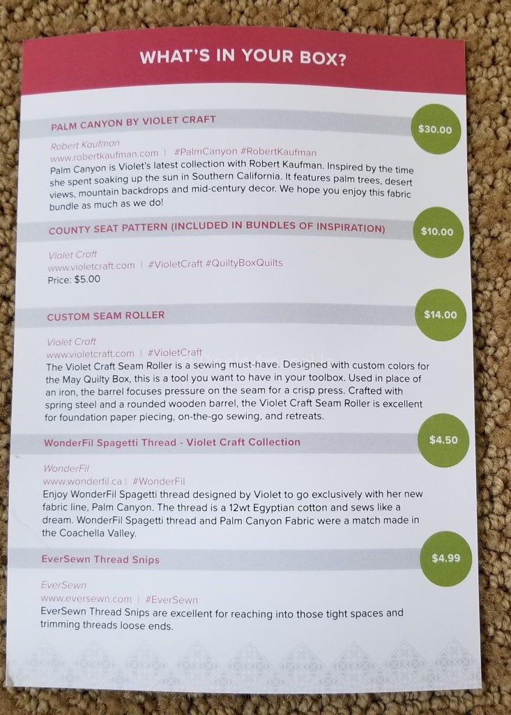 I received the May 2018 Quilty Box that included the following items: