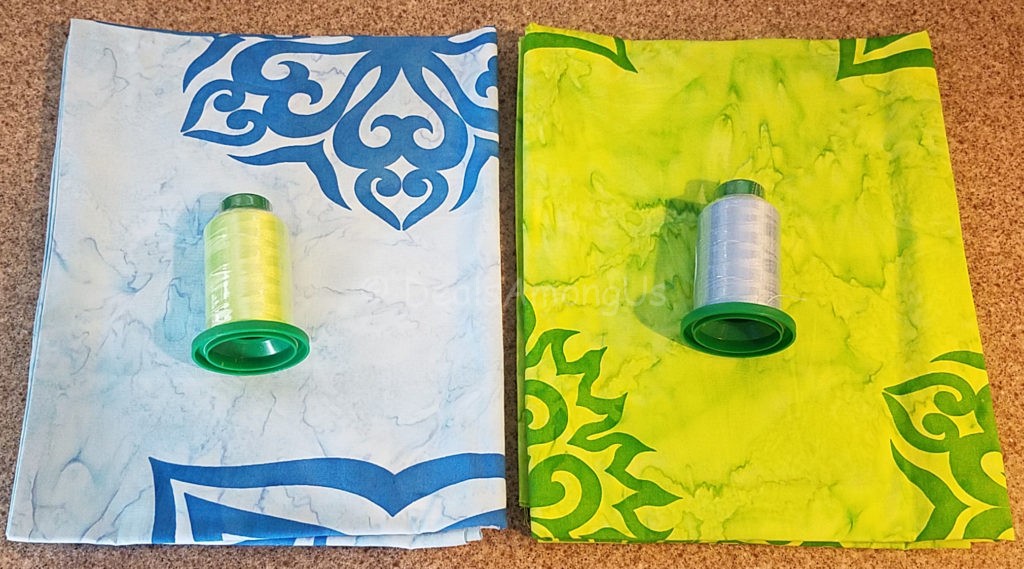 Island Batik Heart Medallion (2 x 1 Yard Cuts), Heart Medallion Checkerboard by Leah Day and Green Isacord Thread and Blue Isacord Thread – Leah Day is this months featured artist and has created the Checkerboard fabric.
