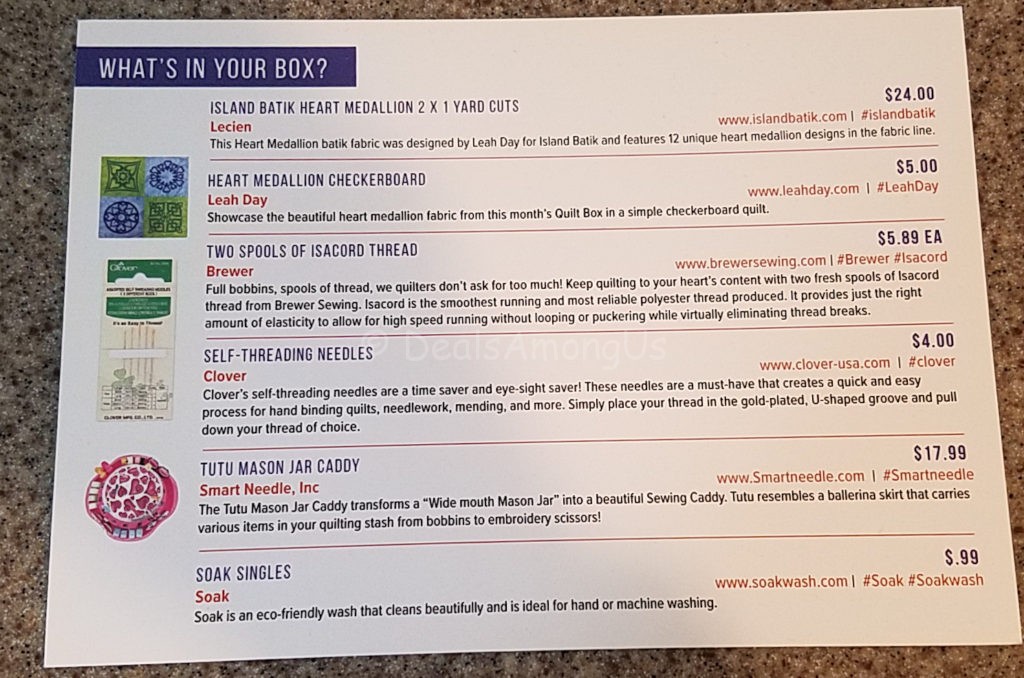 I LOVED this box, and I love that quilters and crafters have a monthly box that delivers the items needed to create a functional and stylish quilt!