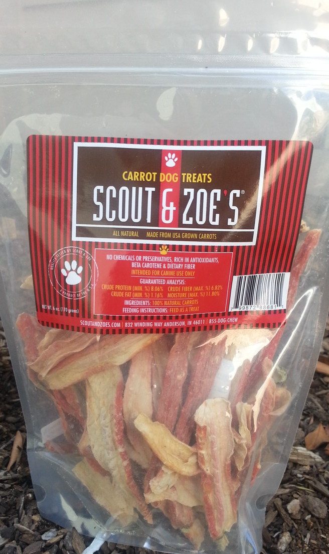 Scout and Zoe’s Carrot Dog Treats: This was a 6oz package of freeze-dried carrot dog treats. The first pup just pushed it around thinking that if he activated it, maybe it would do a dance for him, the other dog ended up loving them! I guess it is a situation of different animals, different taste buds. These are available for $13.99