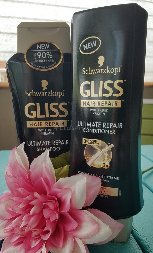 The Schwarzkopf Gliss Hair Repair: Ultimate Repair Shampoo and Conditioner has the benefits of improved combability,Deep reconstruction and most importantly more shine and up to 90% stronger and shinier hair.